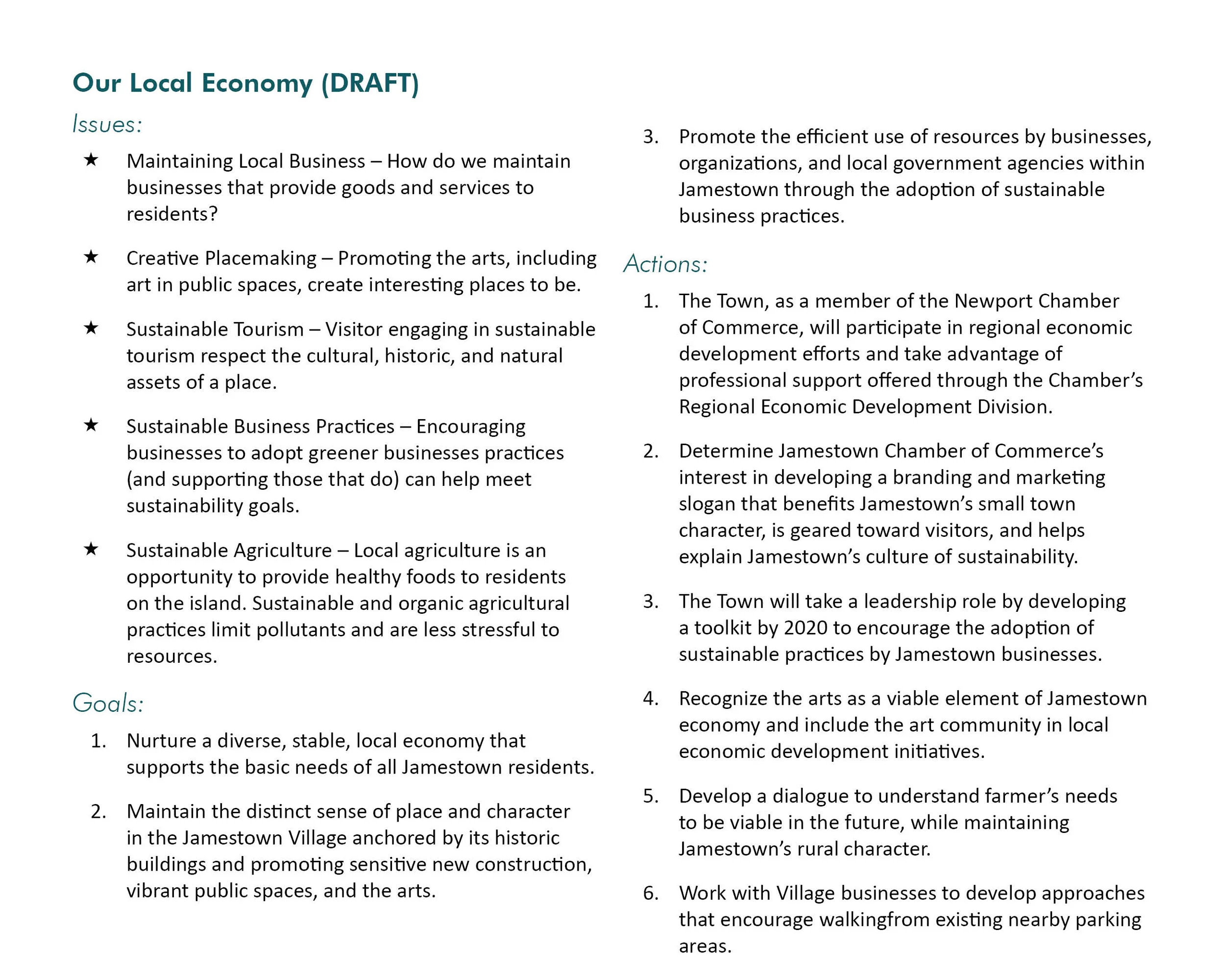 Draft Guiding Principles, Goals, and Actions